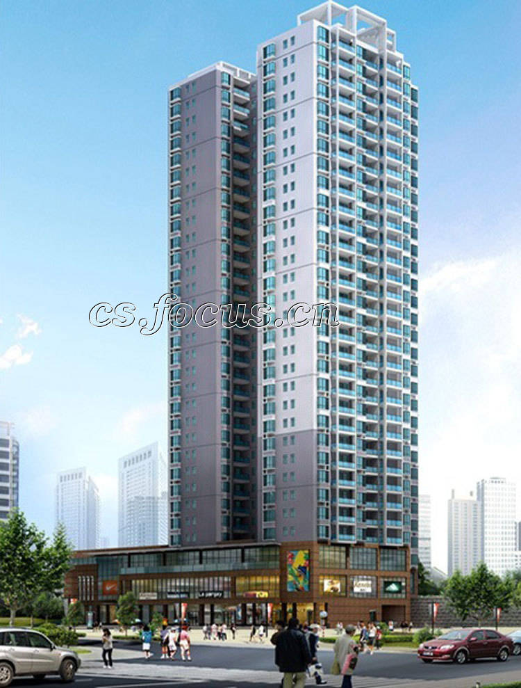 项目位于长沙市开福区车站北路356号,三一大道与车站北路交汇十字路口往南150米.     项目规划为一栋27层高层商住楼。1—3楼为商业裙楼,4—27层为坐北朝南.3梯6户的点式住宅,共150户,面积40—172平方米,户型有一房.二房.三房,以127平方米三房.172平方米四房为主力户型,得房率在83%。