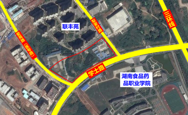 该宗土地位于岳麓区滋源路以东,学士路以北,整体位于三环线(长沙绕城高速以西)。北面有联丰苑住宅小区,南面有湖南食品药品职业学院。此外,东边一公里内有枫华府第住宅小区,湖南中医药大学含浦校区,同时东面1.5公里处有一个商业体:洋湖时代广场,对066号宗地的物业形态选择可能会造成一定影响。