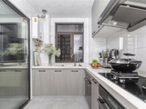 本案是一套130平的现代轻奢风装修,整体以现代大方的硬装空间基础,搭配上轻奢色彩与软装布置,加上黄铜质感与绿植点饰,使得空间装扮出诗意时尚的高级氛围感。 户型:4房2厅3卫 入户玄关处采用整体柜设计,下面留空10CM,可放出入鞋。平整的封闭柜门,隔绝灰尘,掩盖凌乱,开放位置则可放小件