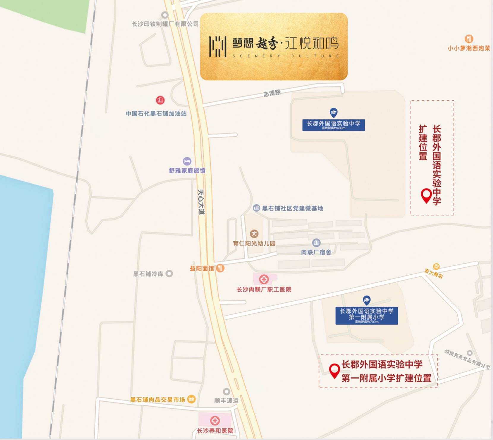 学校:周边有长郡外国语实验中学第一附属小学、青园小学梓枫校区、长郡外国语实验中学等 交通:规划有地铁8号线、9号线,距离湘府路仅约750米 商业:龙湖新姚天街(规划中)、御邦国际广场、天城商业广场等 休闲景点:湘江风光带、湘府文化公园、湖南省文化馆、湖南省地质博物馆、湖南省科技馆等