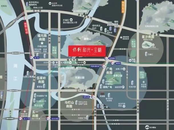 多元立体交通,快速便捷,畅达东西南北:福元路城市动脉,快速对接万家丽高架、东二环、北二环等快速路,连通芙蓉北路、福元路大桥、三一大道、星沙联络线等主干道,畅达城市东西南北;距地铁3号线月湖公园北(已建成)、地铁5号线白茅铺1km(已建成),毗邻地铁8号线长沙大学北(规划中)。