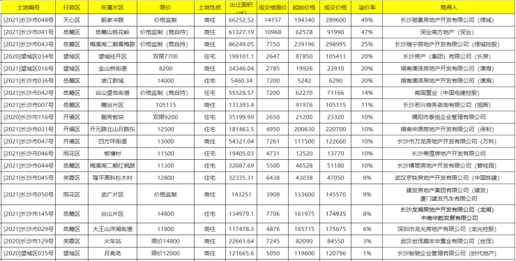还有碧桂园、城发恒伟、阳光城、建发、绿城等房企,均在2021年的长沙土拍市场中有所斩获。