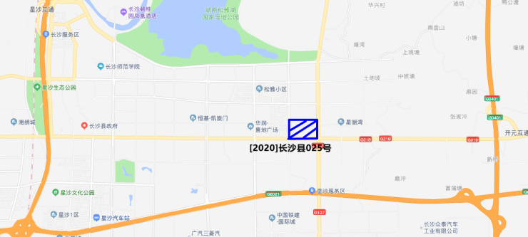 地块位于长沙县榔梨街道花园村佳园路以东、黄兴大道以西、新城路以北。地块西临榔梨街道花园村用地和佳园路,北临榔梨街道花园村用地。地块周边有财汇新天地(建设中),湖南农业大学、湖南生物机电职业技术学院(东湖校区)、湖南三一工业职业技术学院。地块临近长沙磁浮快线及高铁南站,交通较便利。目前地块附近无在售楼盘。