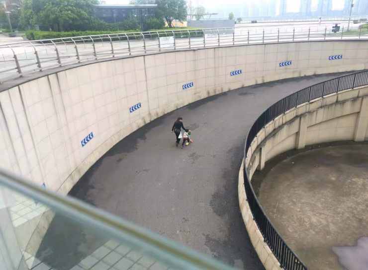 项目滨江风光带上,一只五彩斑斓的风筝逆风飞翔。通往停车场的宽阔车道,俨然成为孩子的专属游乐赛道。