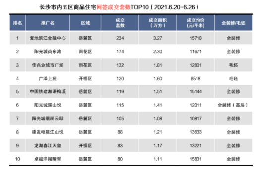 在诸多项目中,岳麓区的复地滨江金融中心、中国铁建湘语梅溪、阳光城溪山悦、阳光城翡丽云邸、建发电建江山悦、先进洋湖晴翠,雨花区的阳光城尚东湾、佳兆业城市广场,以及开福区的广泽上苑、龙湖春江天玺等项目表现亮眼,位居成交榜单TOP10之列。