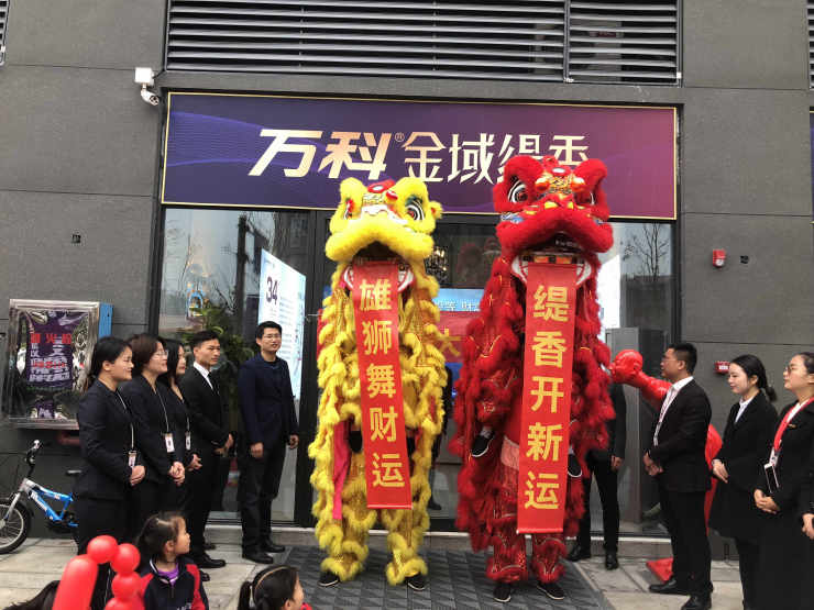 在震耳欲聋的锣鼓声中,威风凛凛的雄狮腾跃飞奔,昂首摆尾,时而表现出威武雄壮,时而表现出憨态可掬,形态逼真,场面威武壮观,人群中不时传来欢呼声。万科金域缇香全新营销中心正式开放,一时间掌声雷动、鞭炮齐鸣,象征着宏图和祺运的开业大吉四字红绸预示着新的发展与突破,万科金域缇香定能在未来取得更好的成绩!