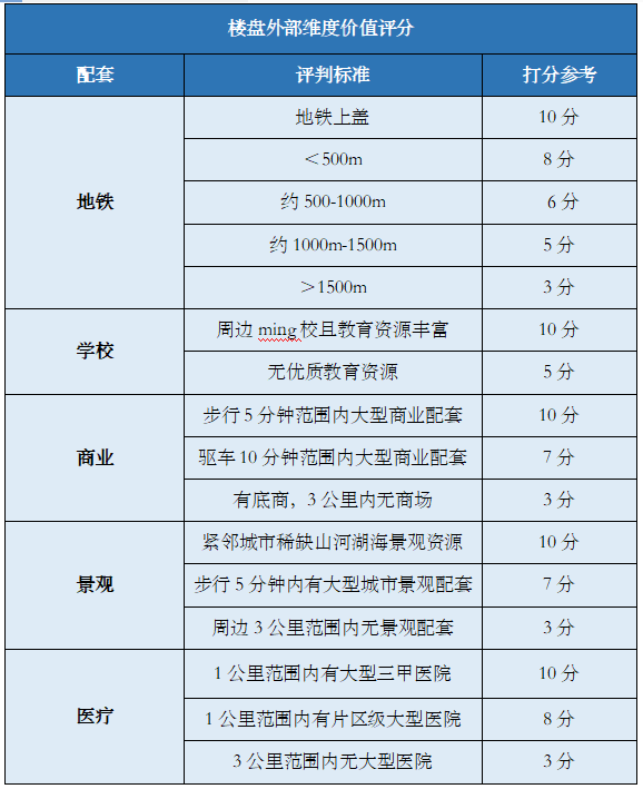 对于看房路上的新手来说,不妨试试用下面这个公式来测算楼盘外部价值。