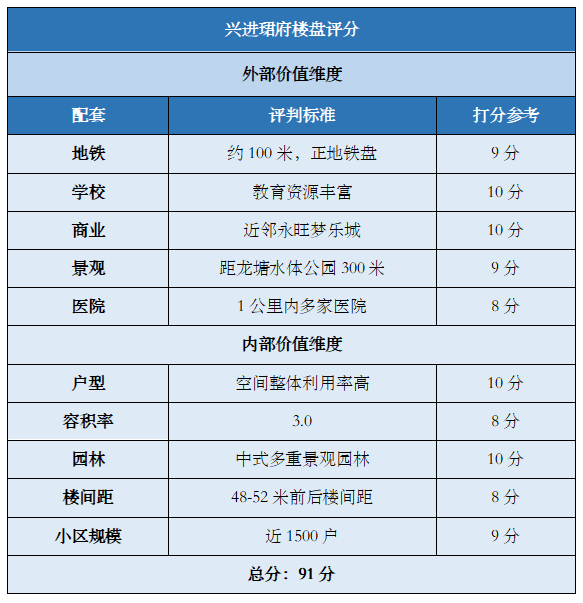 如果套用小区外部维度+内部维度的打分体系,站在客观角度,兴进珺府可以打几分?