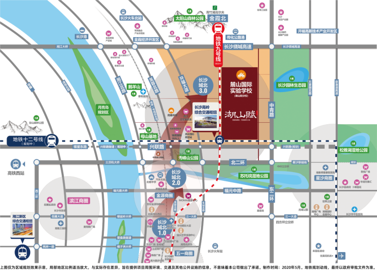 开发商:本资料为要约邀请,不视为要约,所涉面积均为建筑面积,所载文字以及相片、地图、印象示意图、标注图片等仅供参考用途,所有政府、政策信息均来源于官方披露信息,具体以实物、政府主管部门批准文件及买卖双方签订的商品房买卖合同约定为准。如有变化恕不另行通知。本项目推广案名为【恒基旭辉·湖山赋】,政府备案核准名为【恒高紫荆小区】。本资料中对教育资源的介绍,不意味对入学政策的承诺,关于入学政策应以教育相关部门审批的政策为准。地铁规划动线,最终以政府审批文件为准。长住建售许字(2020)第0175,0174,0294号。开发商:长沙恒高房地产开发有限公司。本资料制作时间为2020年9月。