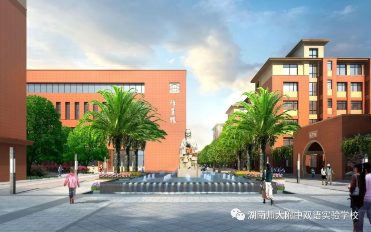 学校位于书香路和枫香路相交的东南角,已被评为“2021年长沙市天心区智慧教育创新试点学校”。学校预计办学规模54个班,小学部36个班,初中部18个班,可容纳3000左右学生就读。