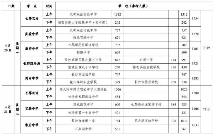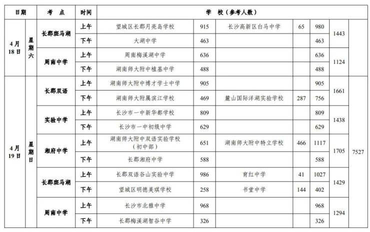 考试地点:城区考生集中在统一考点进行,采用封闭式管理。往年考点包括长沙市实验中学、长郡湘府中学、长郡双语实验中学、长郡斑马湖中学、长郡梅溪湖中学(游泳项目)等-