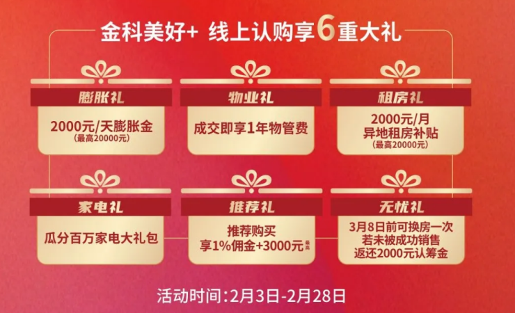这个新春,湖南金科再次开启线上购房节活动。本次线上购房,美好+在既有的客户服务基础上,进行线上服务场景和用户价值体系的塑造,目前,湖南金科房源均已在美好+全面上线,体验足不出户线上VR看房、订房。活动期间,不仅2000元就能定套金科好房,更有线上认购六重大礼。金科在长沙项目主要包括金科集美天辰(110-132㎡住宅)、金科景朝集美星宸(89-119㎡住宅)。