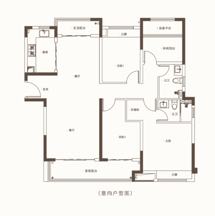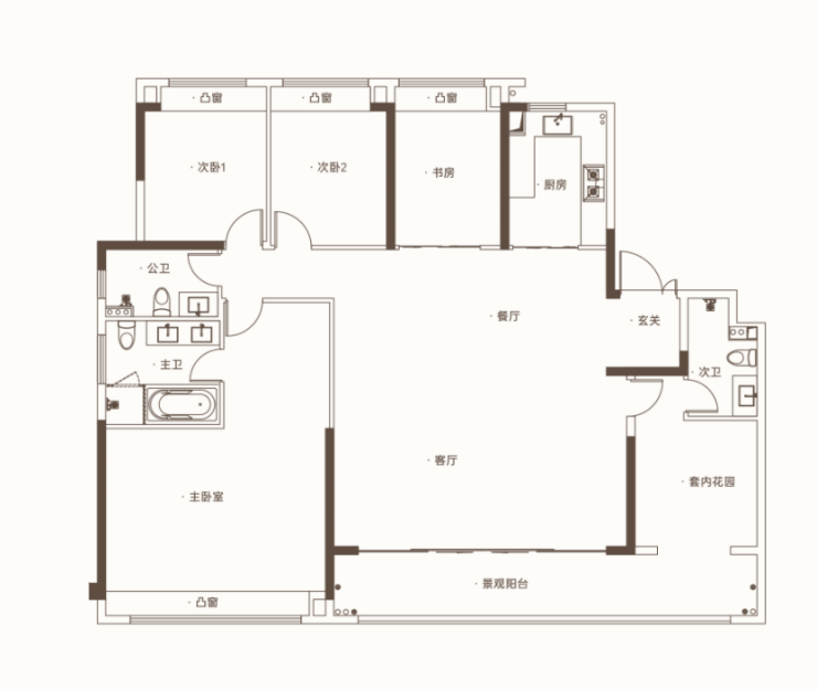 约7.1米阳台让生活与逸趣各得其所,客餐一体形成宽敞自如的公共活动区域,奢享主卧套房、独立卫浴、衣帽间是对生活仪式感的执着,品茗读书皆宜的飘窗容纳生活的小确幸。