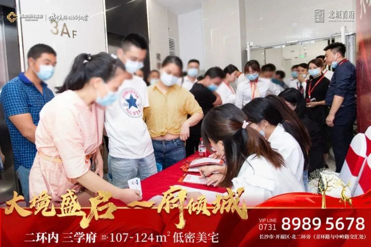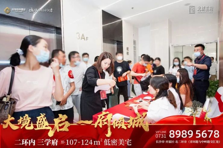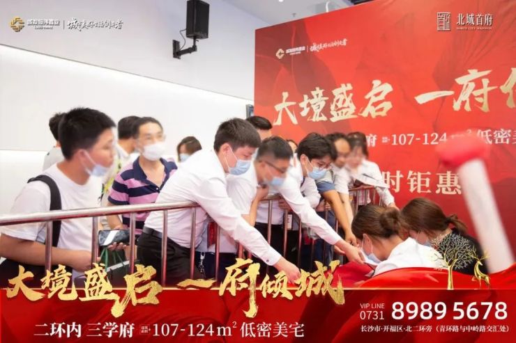 城发恒伟·北城首府等候现场人气如虹,攒动的队伍为长沙增添了一丝夏日的热情。放眼望去,整个开盘现场座无虚席,购房者共襄盛举,言表之间体现出对北城首府未来高品质美好生活的无尽期待。