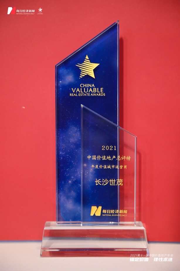 10月26日,由每日经济新闻主办的主题为 “锚定价值,理性求进” 第十一届中国价值地产年会在深圳召开。此次会议上“2021中国价值地产总评榜” 隆重揭榜,长沙世茂凭借强劲的综合实力,一举荣获“年度价值城市运营商”。