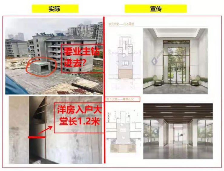 比如,主打高端的正荣滨江紫阙台涉嫌减配,原本宣称的TOP系“紫阙台”疑以“正荣府”标准修建,入户门等处也均未体现出高端盘应有的规制,引发业主不满。与此同时,主打性价比的鸿邦国际城,则因外墙渗水、墙皮脱落、墙体空鼓、安全隐患、管道裸露、多重标准等问题也屡遭业主投诉。