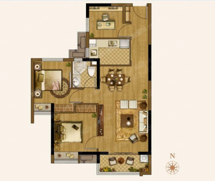简评:88平的小三房设计,空间利用率较高。 厨房:L型厨房设计,可利用空间更大。 客厅:南向双厅,室内阳光更充足。