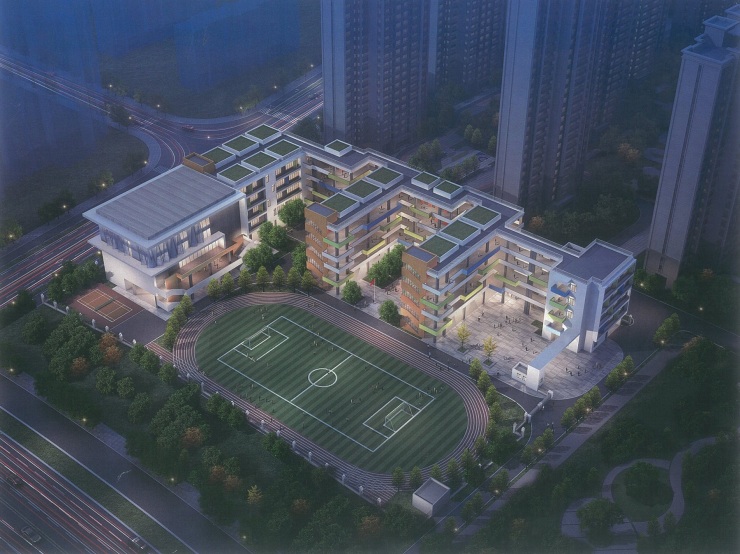 学校位于1号线延长线冯蔡路口站(预计2023年开通),临近长沙北中心规划的35万方商业综合体。让我们来看看具体的效果图。
