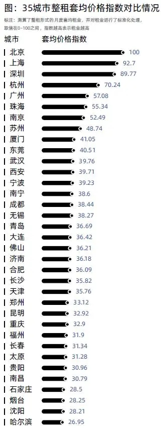 不过,抛开收入论租金并不尽科学。如果将毕业生薪酬纳入统计,北京、上海、深圳、杭州、珠海及广州等地租房压力较大,房租收入比不低于30%。按照城市级别看,一线城市房租收入比约39.23,新一线城市约24.09,二线城市约22.58。