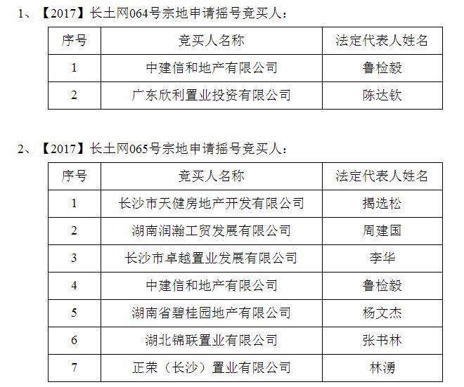 据长沙市国土资源局官方网站发布信息,对【2017】长土网064号、【2017】长土网065号宗地申请摇号竞买人资格审查已完成,并公示:
