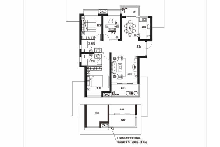北辰的户型是最受人诟病的地方,从户型图就可见,全屋黑色的承重墙,留给购房者的改造空间几乎为0,那些想把柜子镶嵌在墙体里,以增大空间使用率的想法都可以收起来了。加上北辰三角洲公摊并不低,最终到购房者手中的实得使用面积不会很高。另外,整体户型窗户不大,采光不是很强,值得注意。