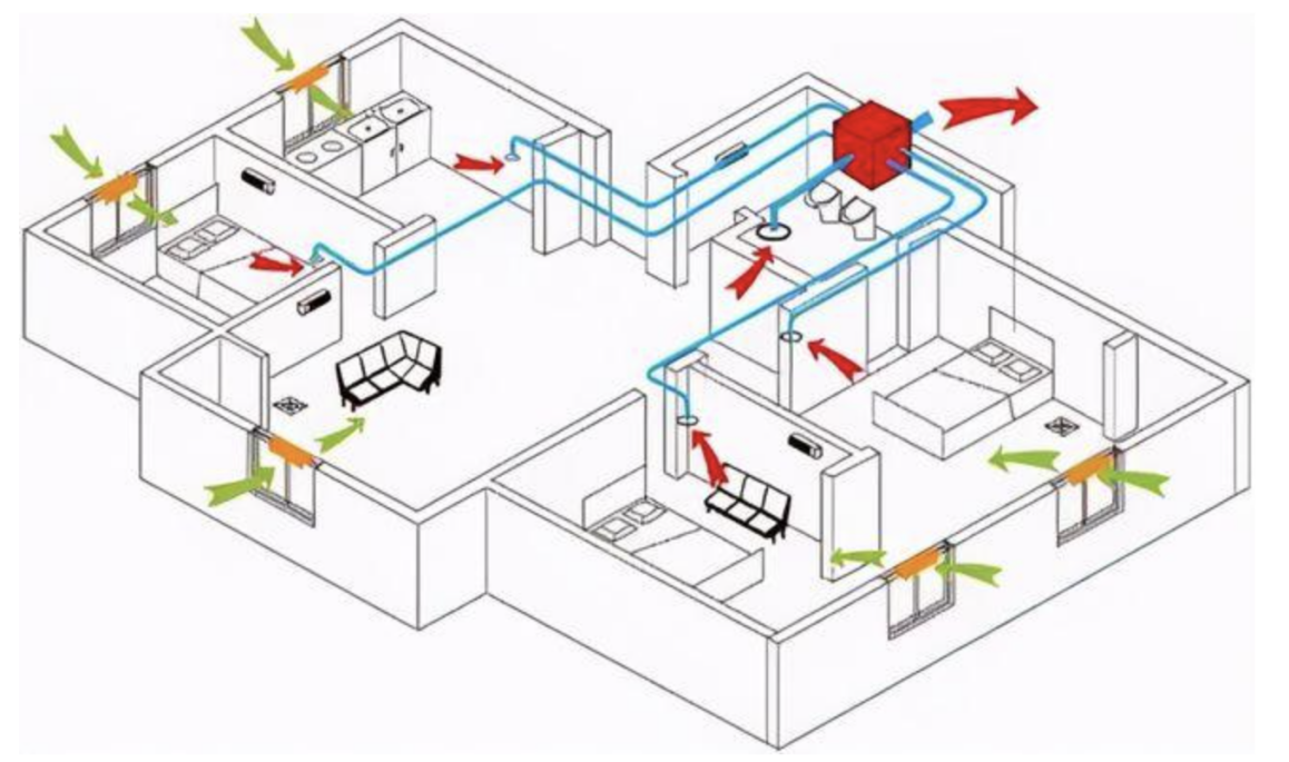 新风系统设备可以使室内外空气循环流通,室内空气集中处理、有序排放,有益于室内空气质量的改善,但要记住的是新风系统不能改变温度。