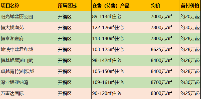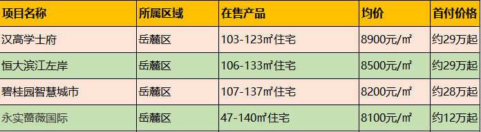 此外,开福区还有如下真•刚需盘待选。(注:首付价格以首套房付三成的标准计算)