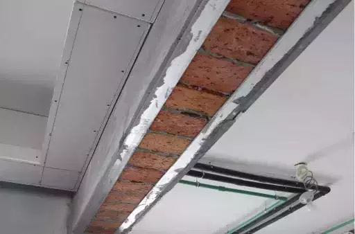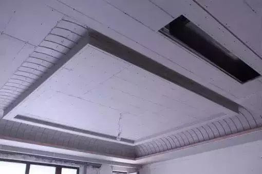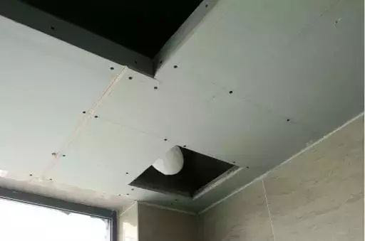 吊顶处理工艺,内外各覆一张石膏板,在保证吊顶的牢固性同时便于日后卫生清理。