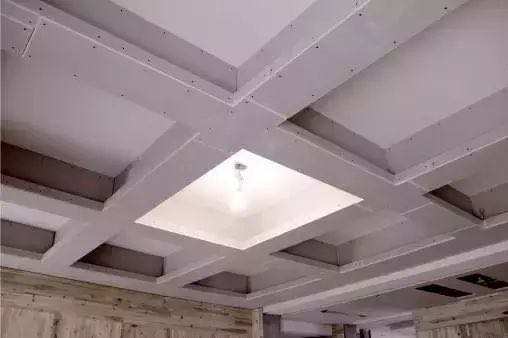吊顶下挂侧板全部采用9厘板,挡光槽使用木工板,保证吊顶的牢固平整。