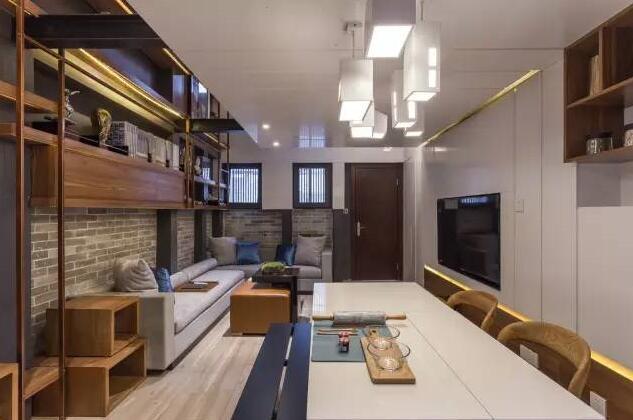 黎国尧是一位资深而狂热的足球迷,也是一位爱书之人。他珍藏的四万多册书籍以及各种与足球相关的珍藏都需要地方安置。将客厅入户处重新排列做成一个书柜,旧屏风,老砖墙和樟木柜,樟木柜不单单只是储物,更成为珍贵的展品。
