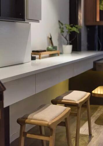 在焕然一新的家里,旧琴台不只是写字读书的功能,与长书桌结合的组合桌上可以满足教小孩写作业+家庭聚会+下棋+读书+喝茶等多种生活模式。