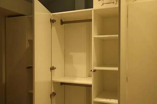 老人生活需要贴心呵护,不同于垂直的90°掩门,这个柜门可以打开至135°,拿取衣物时如果需要走动的话也大大减少碰撞到的潜在危险哦。
