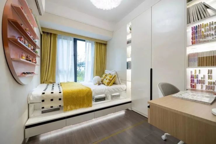 孩子不仅有足够的场地进行手工,绘画,拼乐高等室内游戏,在写作业、读书时,也可以让在厨房的妈妈随时看到,同时巧妙的利用阳台,也能满足于学习与健身等功能,可以是爸爸的茶室、健身室、妈妈的瑜伽室、休息室。