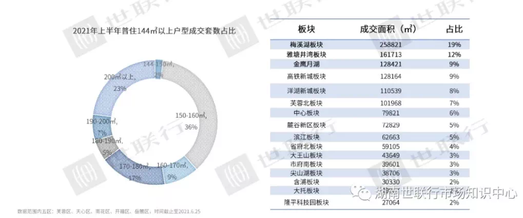 在房票紧俏的情况下,长沙的改善型需求仍在抬头。120-144平方米的户型在成交套数中占到了42%的比重。144-200平方米的户型在成交套数中占到13%的比重。相较于刚改户型,越来越多的购房者在长沙职业倾向于一步到位。