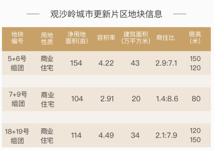 观沙岭城市更新片区定位为“长沙教城融合示范区”,导入市政府、谷山、金融中心几股优势资源,旨在打造智慧城区的样板、城市更新的典范、宜居新城的标杆、西岸融城的新极。本次计划有三个组团的商住地块上架。