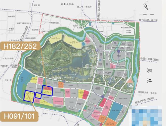 会展新城片区面积规划东至黄兴大道、南至湘府东路以南500米、西至浏阳河(含磨盘洲)、北至浏阳河,与长沙南站距离约1公里。