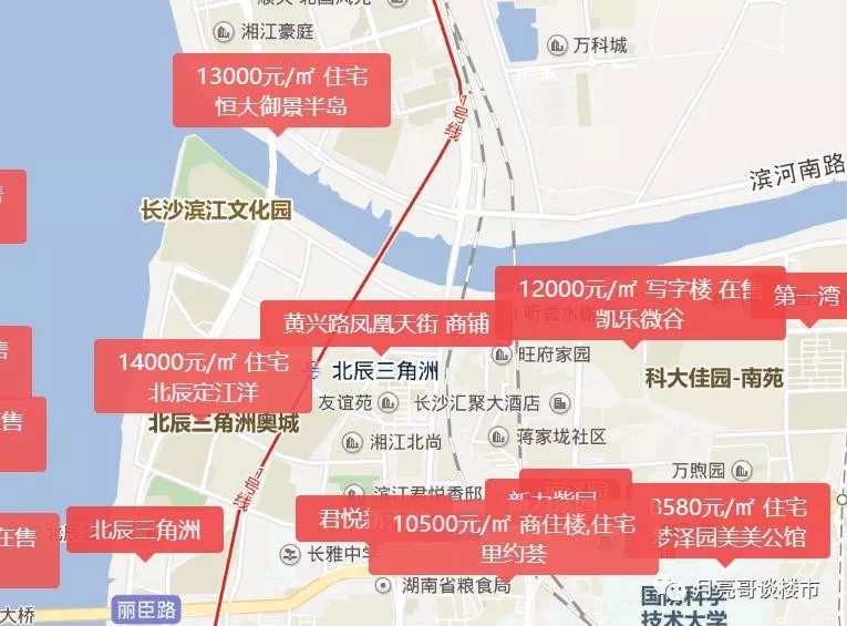 通过对武汉的考察,沿江二手盘已破7w+,我认为:北辰片区、滨江新城片区会成为长沙未来较具发展潜力的区域,也是房价涨幅较大的区域。
