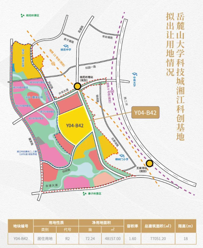 这两宗地块都位于大王山菁英教育组团板块。位于岳麓区洋湖街道,东临大王山门户广场、南临虹山路、西临联山路(规划路)、北临联江路。
