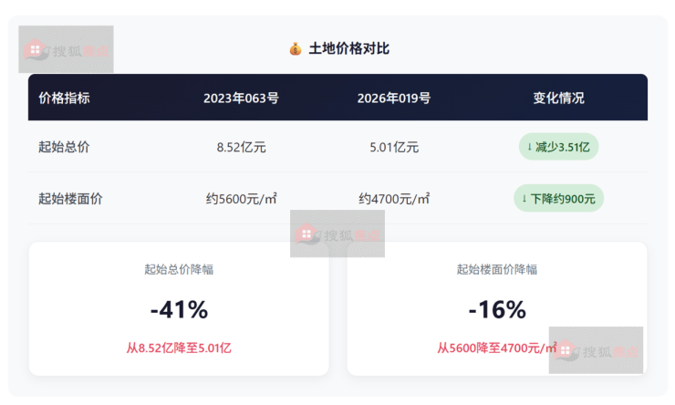 起始总价从8.52亿元直降至5.01亿元,降幅高达40%;楼面价从5600元/㎡降至4700元/㎡,降幅约16%。这一数据背后,是长沙楼市近几年持续承压的真实写照。