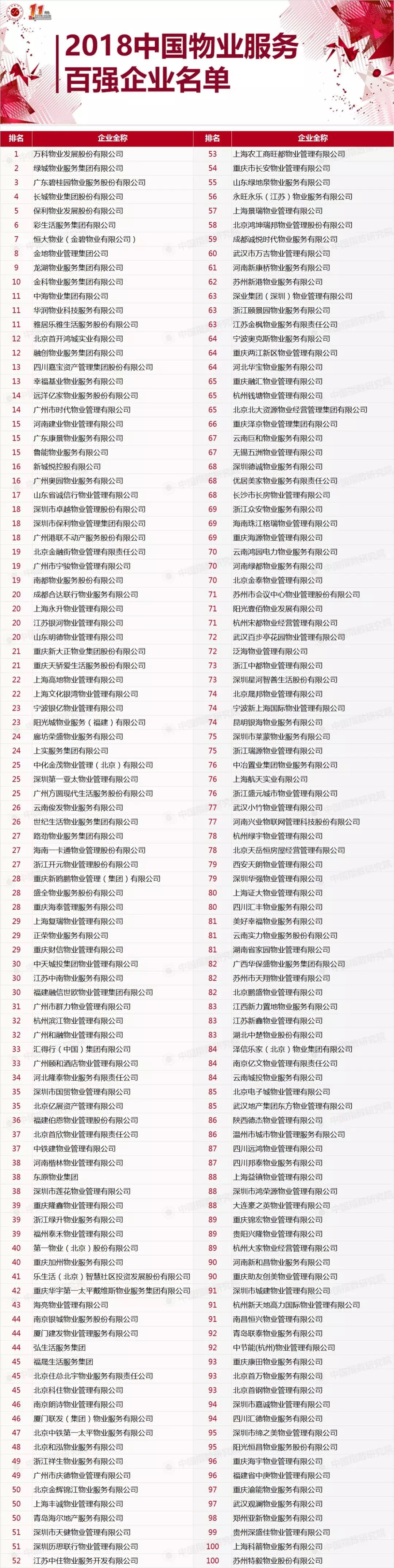 6月1日,中国指数研究院在北京隆重发布2018中国物业服务百强企业研究成果,发掘规模大、实力强、服务品质高的优秀物业服务企业,发挥示范带头作用,引领行业健康、快速发展。