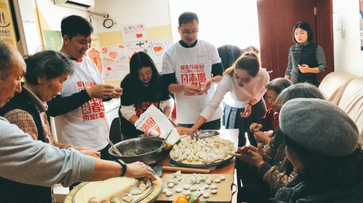 在敬老院里,志愿者们自组分队,有的负责帮老人打扫卫生,有的负责包饺子,来自北京金科廊桥水岸的业主尤先生为老人理发,平日里清净的敬老院热闹了起来,一片欢声笑语,暖意融融。