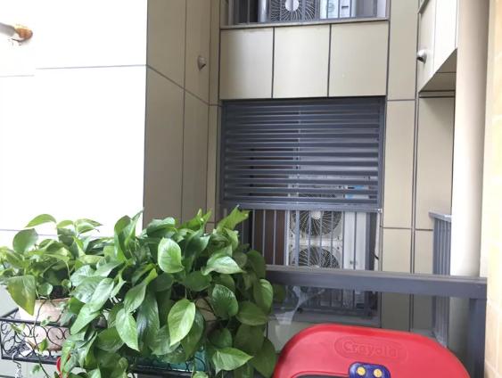 李先生测量了一下阳台玻璃护栏高度,数据显示护栏净高1.3米,抛去台阶高度,仅剩1.08米,"遇到刮风下雨,阳台积水严重时可达2-3公分,邻居家的空调外机也正对着我们阳台,噪音大且'冬冷夏热'。而且我家两个小孩,大的身高已有1.3米,如孩子贪玩从阳台坠落谁负责?"
