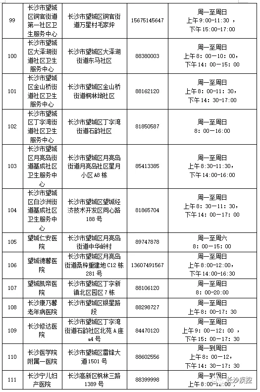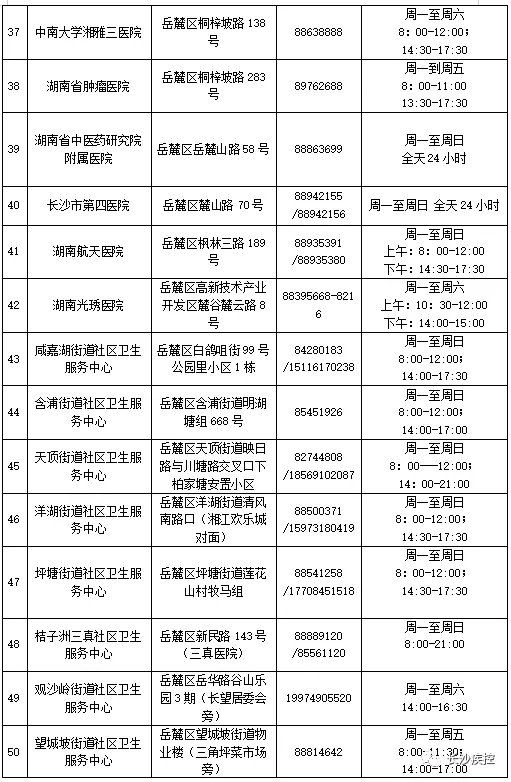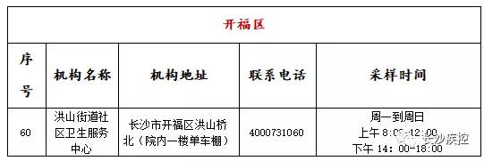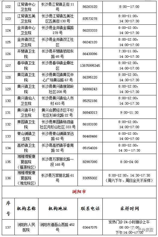 长沙各区域较新核酸检测地点(源自长沙疾控)
