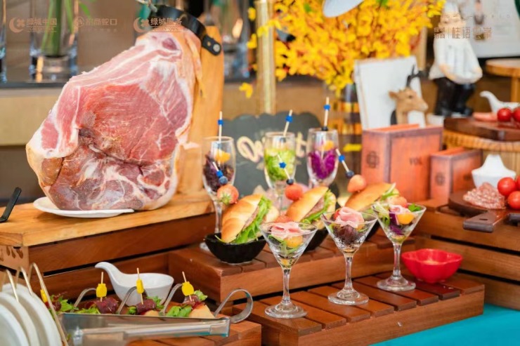 在星级主厨长刀划过的瞬间,意大利帕马火腿那抹动人的大理石纹路的红白美感即刻呈现。或是轻盈浅绯、薄如蝉翼,或是凝重绛红、纹理古朴,为活动现场增添了别样的风情与璀璨。