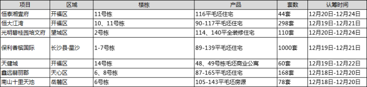 恒泰湘壹府11号栋116平毛坯住宅房源于12月20日开始认筹,为期3个工作日,至24日截止,共44套,毛坯交付,预计均价7800元/平。