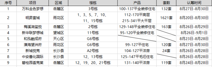 长沙今日9盘认筹,万科金色梦想、澳海望洲府新入市。
