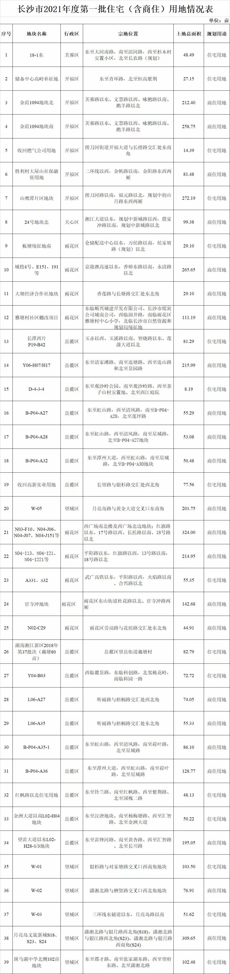 长沙首批集中出让地块出炉!39宗涉住宅用地面积超4400亩