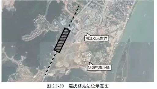 巡抚路站车站位于潭州大道与巡抚路交叉口东侧延西南至东北设置,紧邻 湘江欢乐城海洋世界项目和湘军文化园,服务于大王山文旅片区核心文旅项目湘江欢乐城等文旅项目旅客。地块现状基本为空地及施工场地。