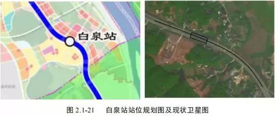 白泉站车站位于潭州大道和东西向规划交叉口以南,南北向布置潭州大道, 周边地块现状规划长沙湘江新区的居住区,目前部分地块已开发建设住宅小区。本站周边规划居住用地为主。