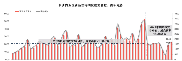 供应端风生水起,成交端的表现也可圈可点。3月首周,长沙内五区一手住宅成交1749套,成交面积23.05万方,环比分别上涨15%、18%。成交套数与成交面积均高过2020年长沙楼市的周均表现。